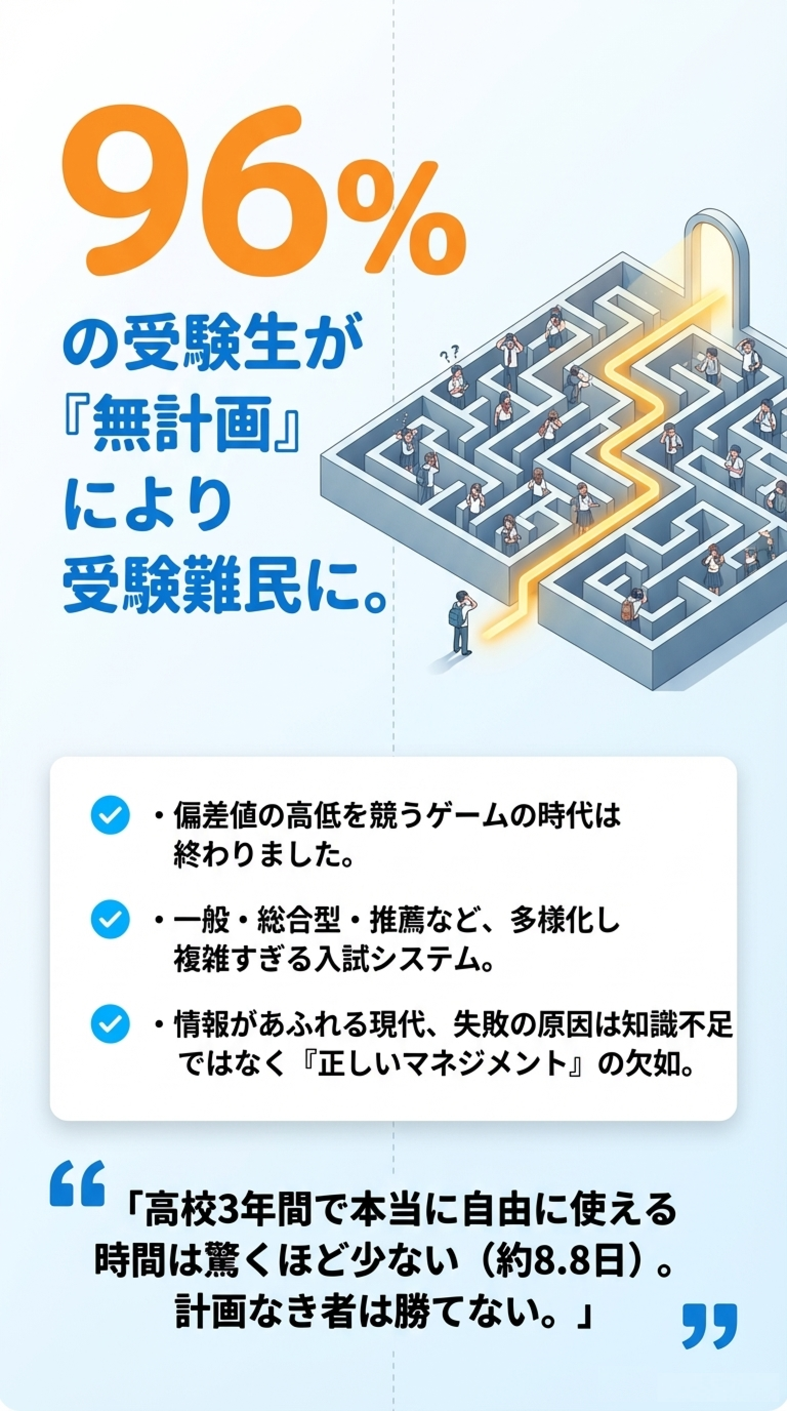 数学: 「数Ⅰ・A」を一気に学習するため、正しい「学び方」を身につけることが合格への近道です。