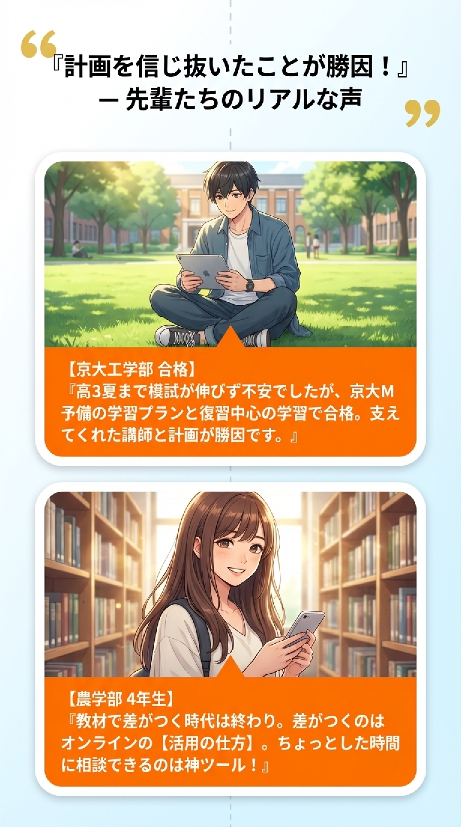 そんな不安を解消し、「米沢にいながら、全国トップレベルの受験戦略」を手に入れられるのが、ペガサス学習塾米沢教室でスタートした「京大M予備」です。