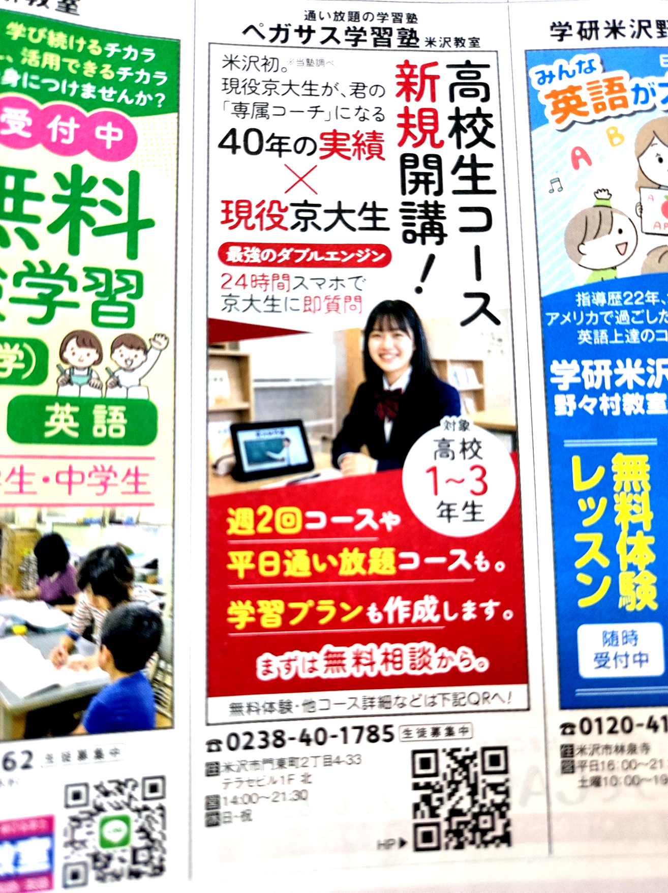 【お問い合わせ・ご相談】 ペガサス学習塾 米沢教室 電話:0238-40-1785(受付 10:00〜22:00)